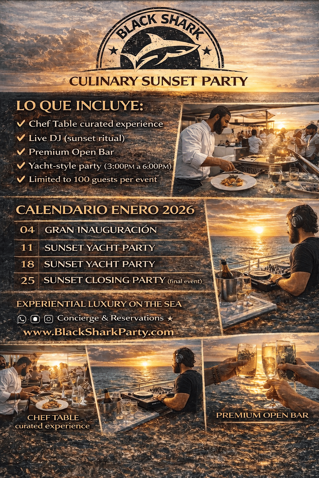 Sail into golden hour aboard a luxury catamaran, where gastronomy, music, and ocean views come together in an intimate, high-end atmosphere. With a maximum of 100 guests, BLACK SHARK offers a refined, social, and immersive experience far beyond a typical boat party.